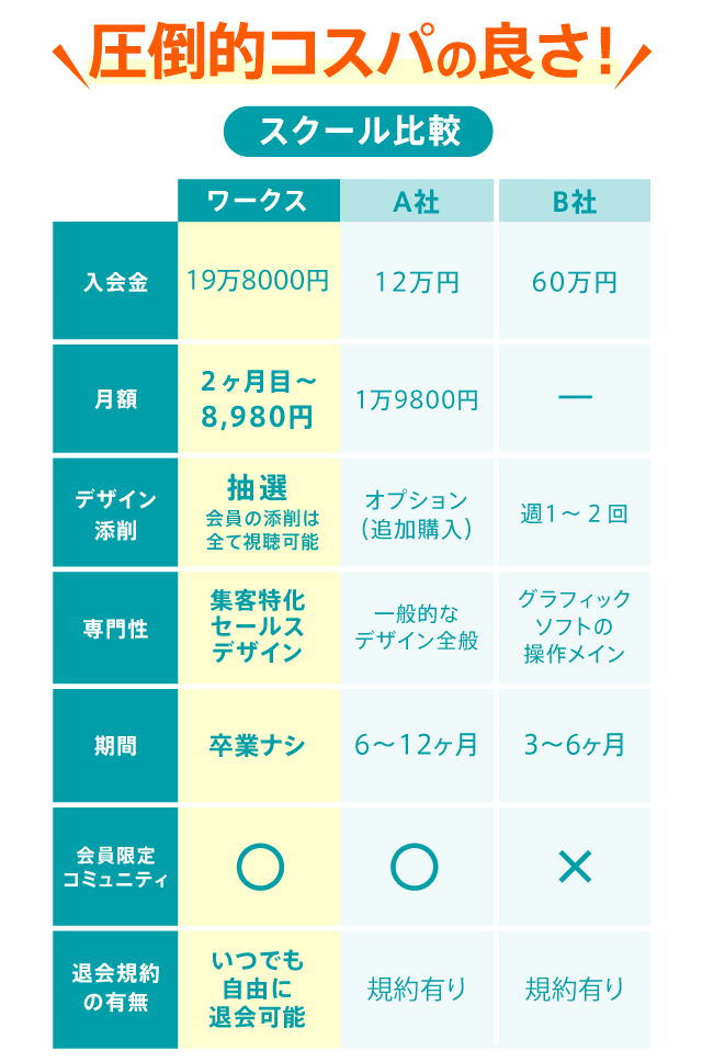 月々数万円のスクールと比べ、低コストで継続いただけます。